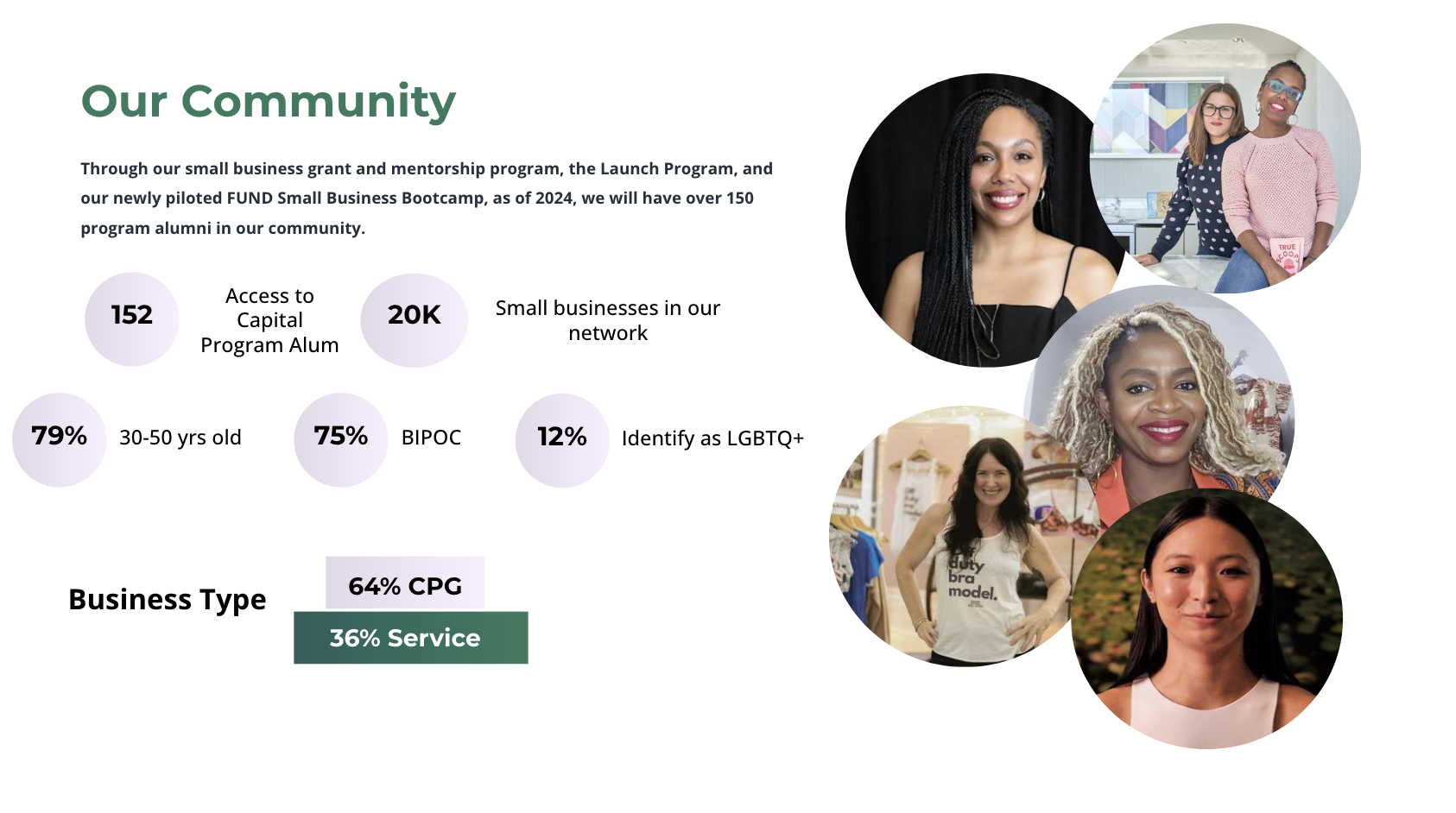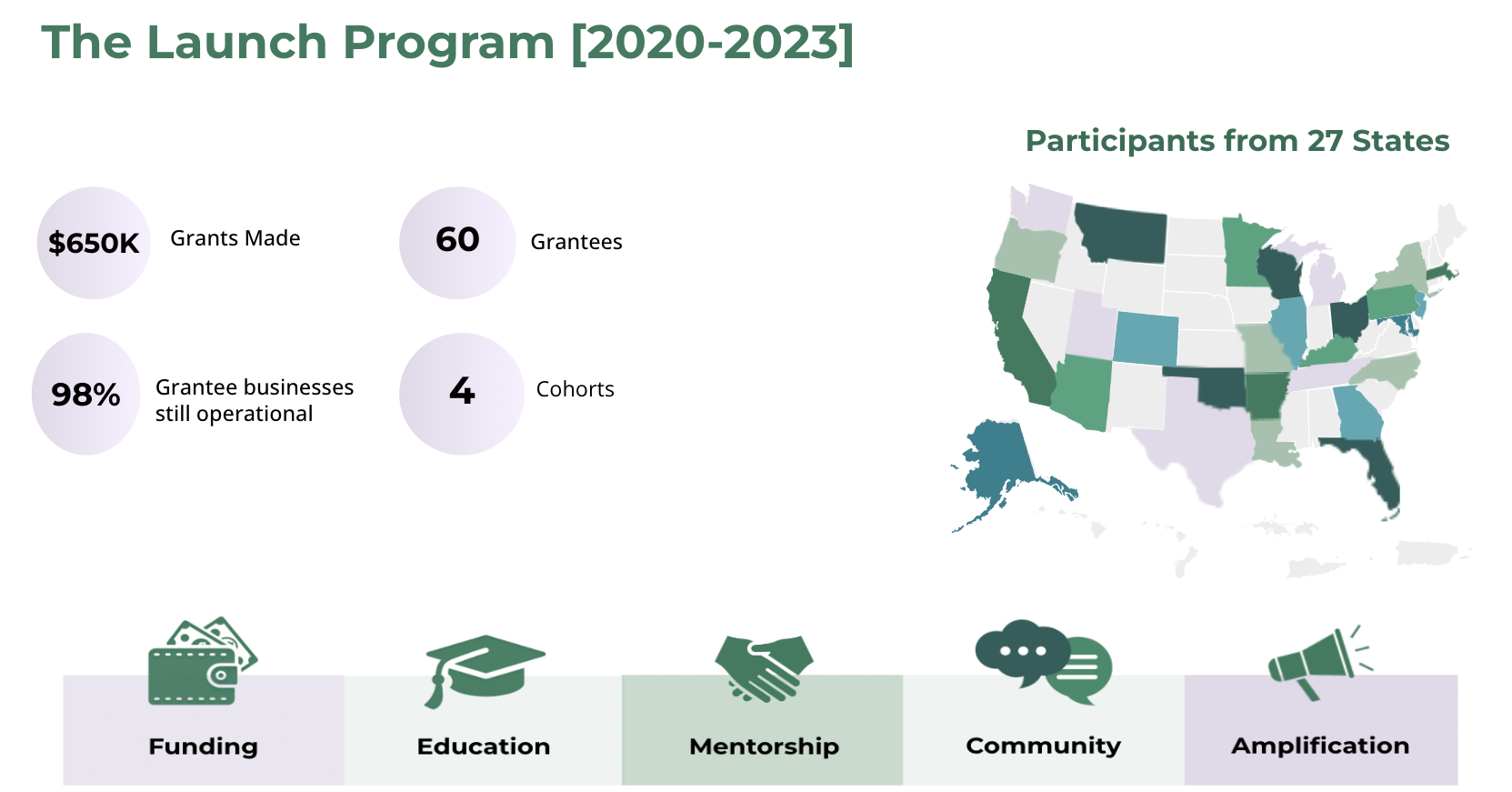 In 2023, Ladies Who Launch expanded our reach, deepened our impact, and watched in awe as the women & non-binary small business owners in our community took their ventures to new heights. We saw a 650% increase in applications received for our annual grant program, and developed new initiatives and resources to meet this need. In doing so, we grew the number of small businesses served annually by over 450% and saw our digital support tools leveraged more than 100K times on ladieswholaunch.org. We brought free, educational events to Denver, CO and Belfast, Northern Ireland, reached hundreds via free virtual programming, and drove $225K in grants directly to underrepresented founders.