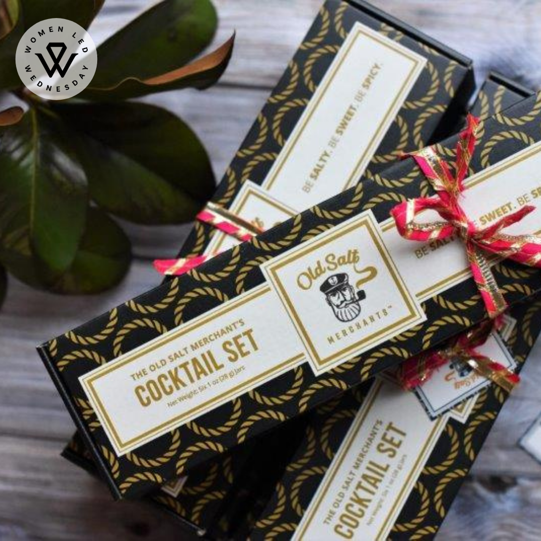 Woman-owned & operated, Old Salt Merchants channels the spirit of their namesake to source unique salts and sugars. This cocktail set includes Black Lava Salt, Chili Lime Salt, Smoky Bold Salt, Whiskey Barrel Sugar, Lavender Sugar and Rose Sugar.